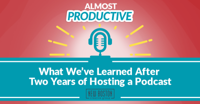 Two years ago, we launched the Almost Productive podcast with curiosity, a few microphones and a whole lot of enthusiasm. Our goal was to make marketing more accessible by sharing our expertise while also gaining hands-on experience to guide clients starting their own podcasting ventures. Since then, we’ve had plenty of laughs, learned a ton and discovered what it really takes to keep a show going. To celebrate our two-year milestone, we’re sharing a special Q&A with our hosts and lead producer. Whether you’ve tuned in since day one or you’re just meeting us here for the first time, consider this a behind-the-scenes peek at the highs, hiccups and lessons of creating a podcast.